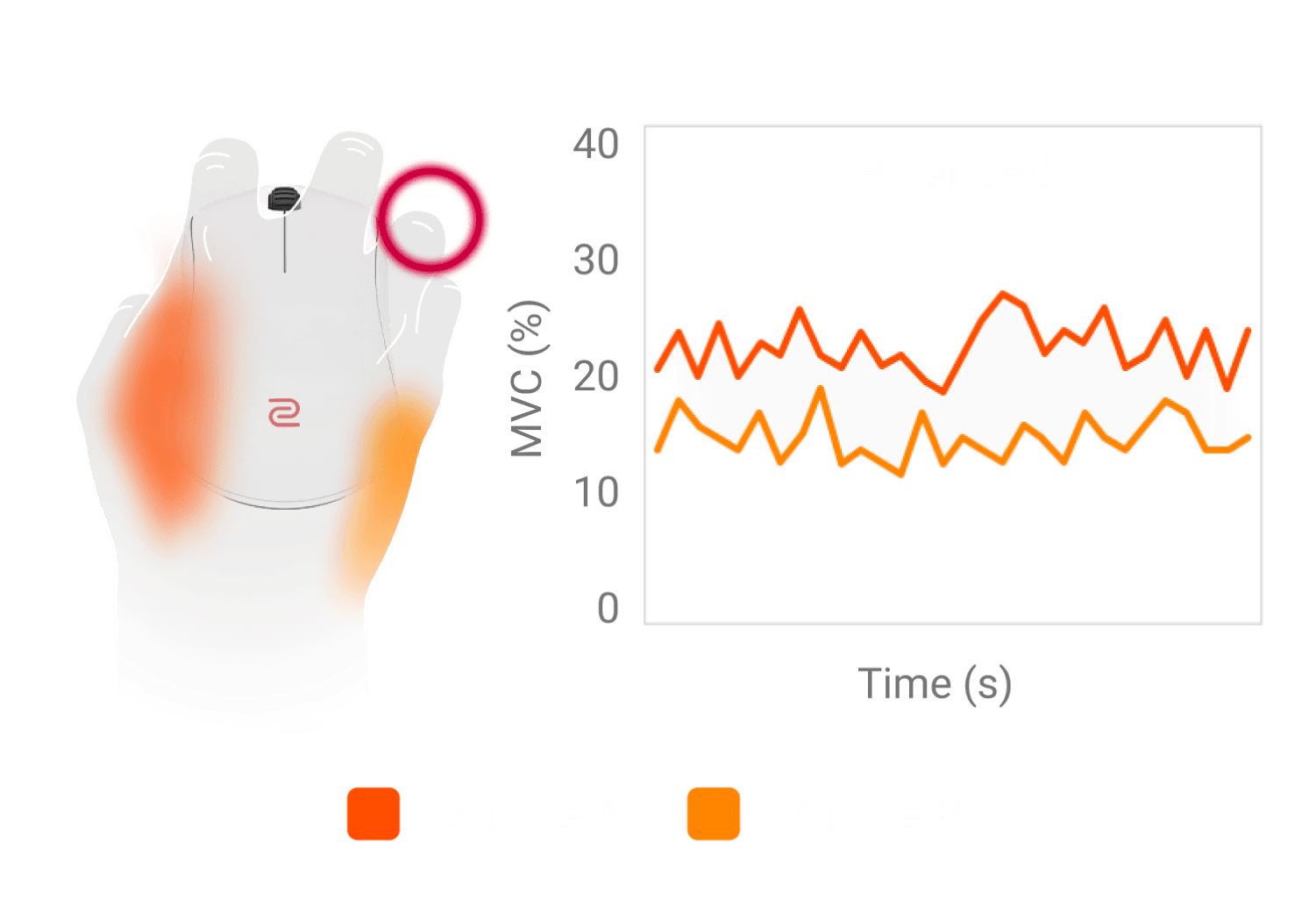 Das nach rechts gewölbte Design bietet deinem Ringfinger einen natürlichen Platz, was für eine gleichmäßige Kraftverteilung auf beiden Seiten der Hand sorgt. So behältst du mehr Stabilität und Kontrolle, besonders bei schnellen Mausbewegungen.