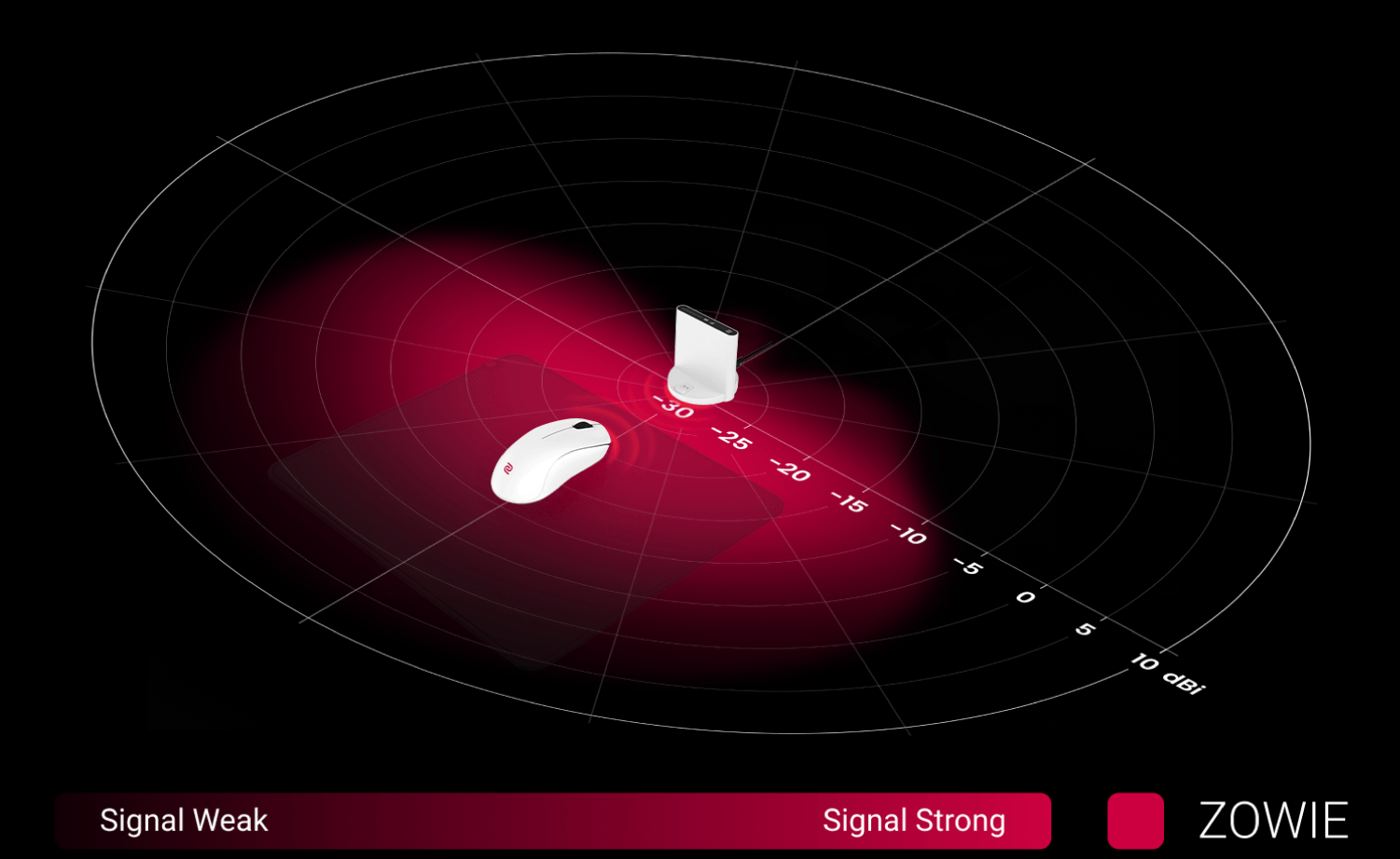Der exklusive, richtungsorientierte Empfänger vergrößert den Empfangsbereich in Richtung der Maus, wodurch das Signal verbessert wird. Ein eingeschränkter Empfangsbereich an der Rückseite reduziert effektiv Störungen durch Signale von hinten.